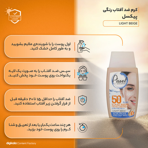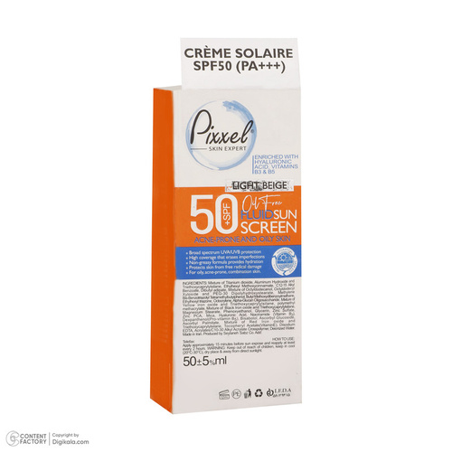 کرم ضدآفتاب رنگی پیکسل 50 SPFمدل LIGHT BEIGE مناسب برای پوستهای چرب، حجم 50 میلیلیتر