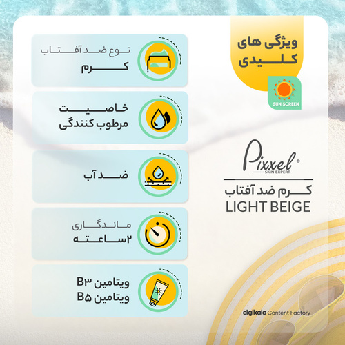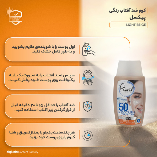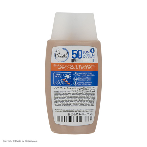 کرم ضدآفتاب رنگی پیکسل +SPF50 مدل LIGHT BEIGE، مناسب پوستهای حساس و خشک، حجم 50 میلیلیتر