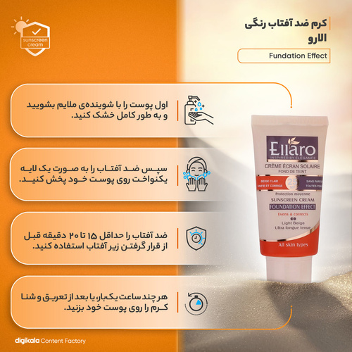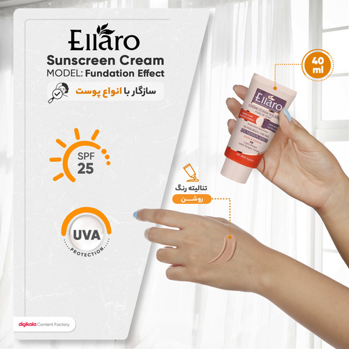 کرم ضد آفتاب رنگی الارو SPF25 سری Fundation Effect مناسب انواع پوست تحت لیسانس حجم 40 میلیلیتر